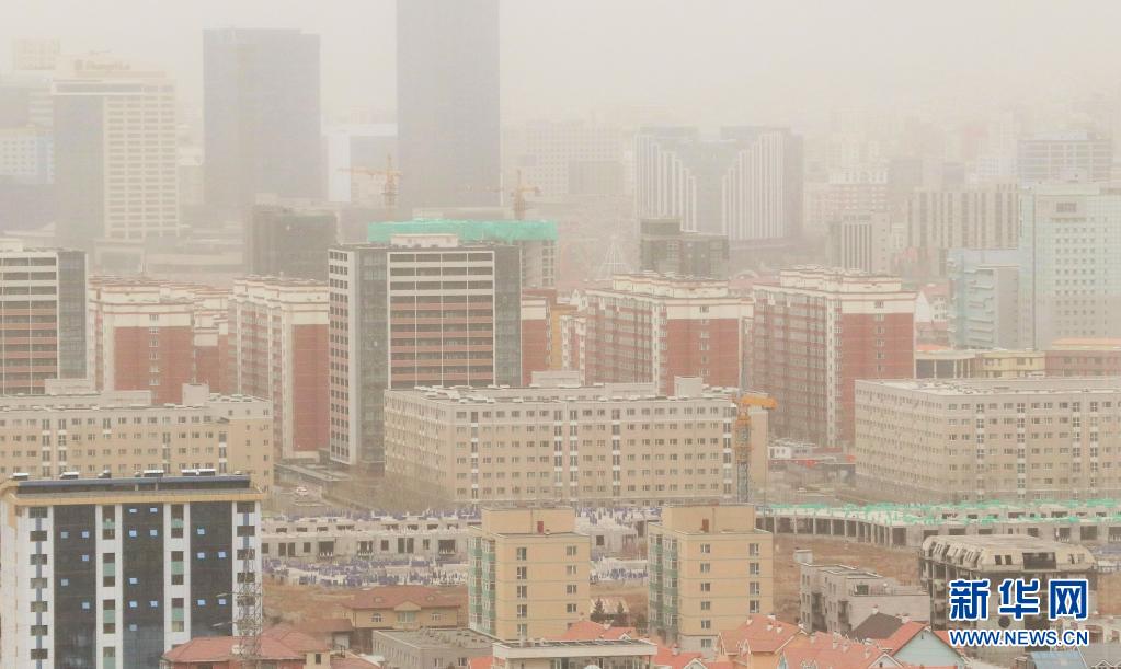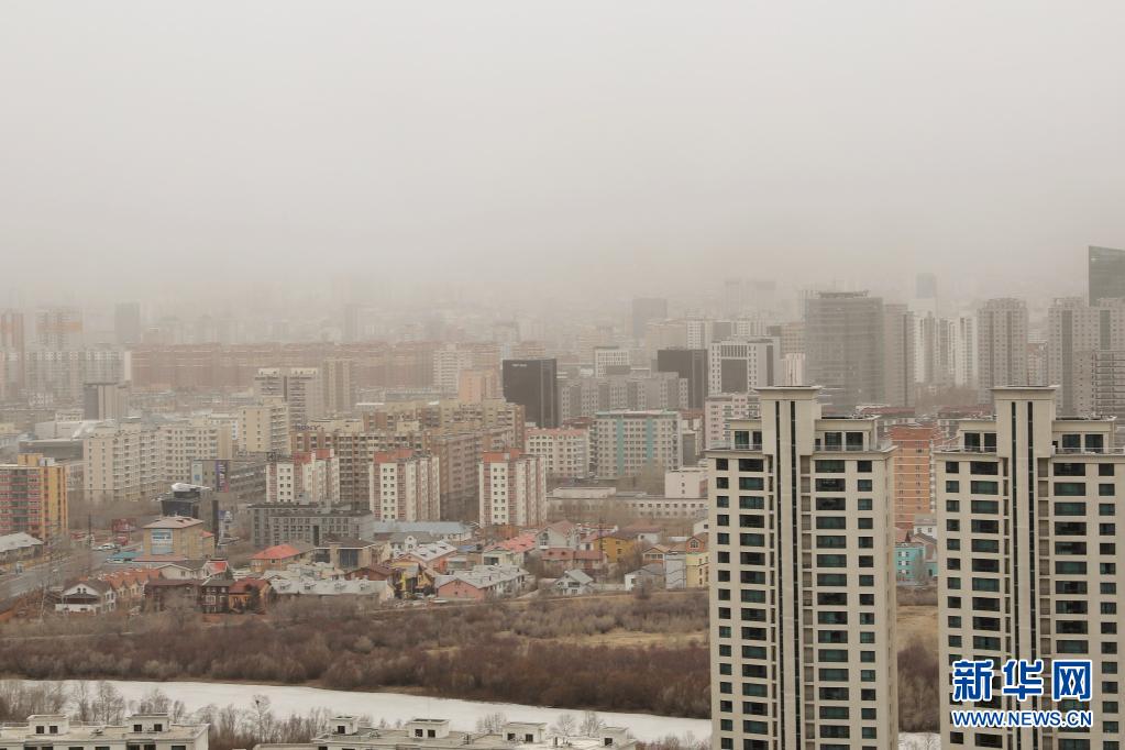 這是3月27日拍攝的蒙古國烏蘭巴托市。 蒙古國緊急情況總局27日發布警報說,26日起在蒙古國西部地區形成的強風、沙塵暴和暴風雪天氣正逐漸影響全境。 新華社記者 阿斯鋼 攝
