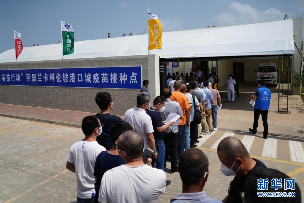 4月5日,在斯里蘭卡科倫坡港口城疫苗接種點,中國公民排隊等候接種疫苗。 中國推出的“春苗行動”5日在斯里蘭卡“一帶一路”建設標志性項目科倫坡港口城營地正式啟動。據中國駐斯大使館介紹,斯里蘭卡政府根據自愿原則將全體在斯中國公民免費納入了當地疫苗接種體系。新華社記者 唐璐 攝