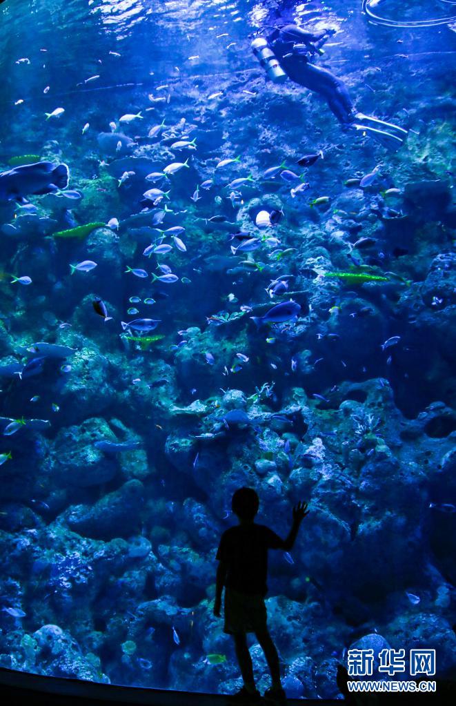 4月1日,游客在澳大利亞凱恩斯參觀水族館。