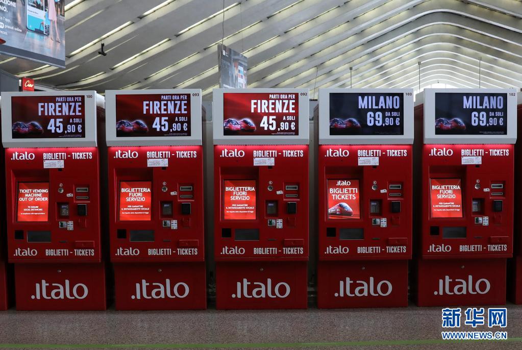 4月3日拍攝的意大利首都羅馬的特米尼火車站內(nèi)的售票機(jī)。 從4月3日至5日的復(fù)活節(jié)假期,意大利全境的新冠肺炎疫情防控等級,都升級為最高等級的紅色,實(shí)施“封城”措施。根據(jù)意衛(wèi)生部3日公布的數(shù)字,該國當(dāng)日新增新冠確診病例21261例,已接種兩針新冠疫苗的人數(shù)超過341萬人。 新華社記者 程婷婷 攝