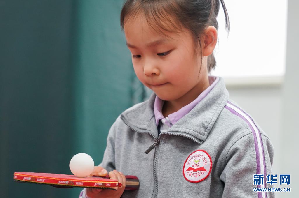 近年來,為發展學生體育特長,豐富校園文體生活,上海市位育實驗學校把開展校園乒乓球活動作為提高學生素質的重要舉措,讓孩子們在鍛煉身體的同時享受乒乓球運動的快樂。 這是一名學生在上海市位育實驗學校教室內訓練(3月30日攝)。 新華社記者丁汀攝