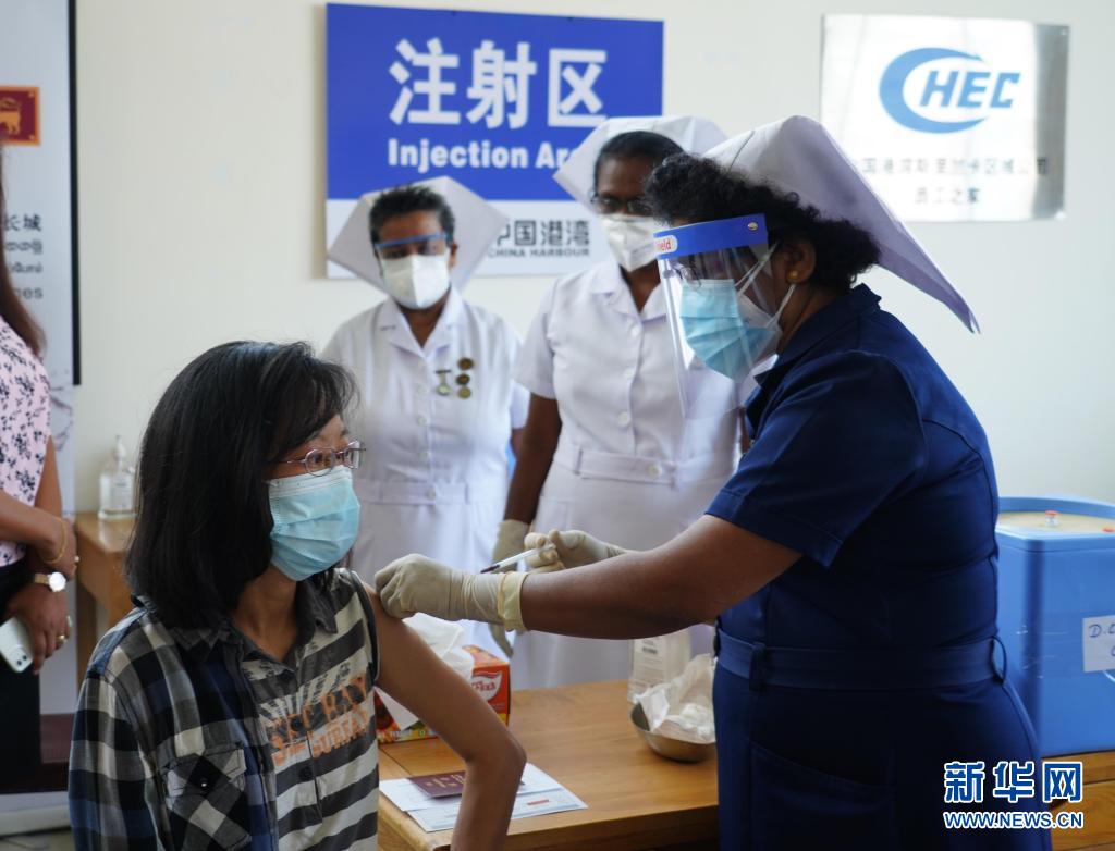 4月5日,在斯里蘭卡科倫坡港口城疫苗接種點,一名中國公民接種疫苗。