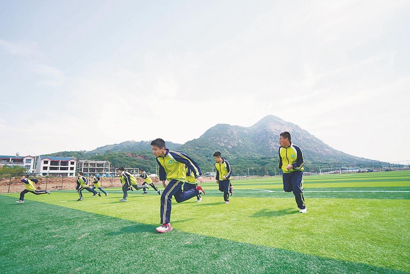 球場位于海邊,視野開闊,空氣清新。 東南網4月8日訊(福建日報記者王毅 通訊員 夏斌 林婷 攝影報道)7日,在霞浦縣沙江鎮社會足球場,涵江小學足球隊在教練的帶領下進行訓練。 2020年5月,霞浦縣等我省20個縣市獲批為全國社會足球場地設施建設專項行動第二批重點推進城市。沙江鎮的這塊臨海足球場是霞浦縣建成的首塊社會足球場地,項目占地面積13300平方米,總投資352萬元,于今年1月正式投入使用,為當地青少年足球運動的發展提供了免費的專業場所。