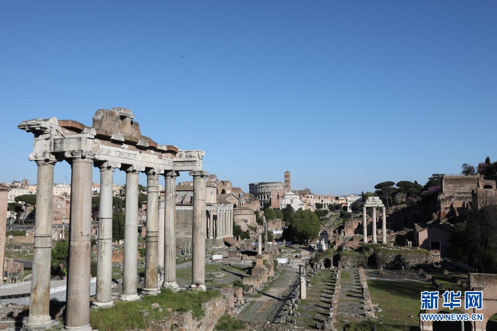 這是4月8日在意大利首都羅馬拍攝的對游客關閉的古羅馬廣場。 根據意衛生部4月8日公布的數字,該國當日新增新冠確診病例17221例,現存病例為544330例。 新華社記者 程婷婷 攝