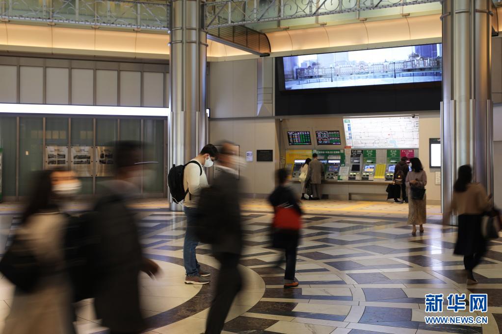 4月12日,戴口罩的乘客在日本東京車站內(nèi)。
