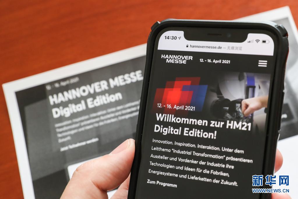 這是4月12日在德國首都柏林拍攝的2021年漢諾威工業(yè)博覽會線上版本的網(wǎng)頁頁面。
