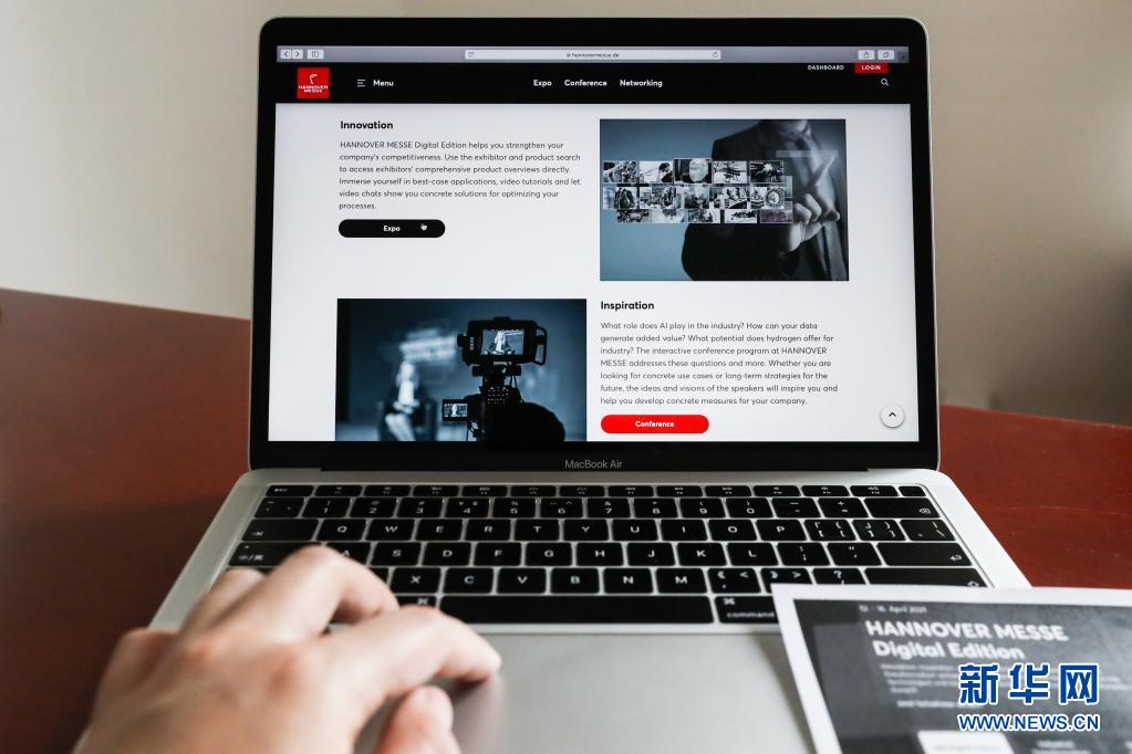 這是4月12日在德國首都柏林拍攝的2021年漢諾威工業博覽會線上版本的網頁頁面。 受新冠疫情影響,2021年漢諾威工業博覽會12日在線上開幕,將持續至16日。 新華社記者 單宇琦 攝