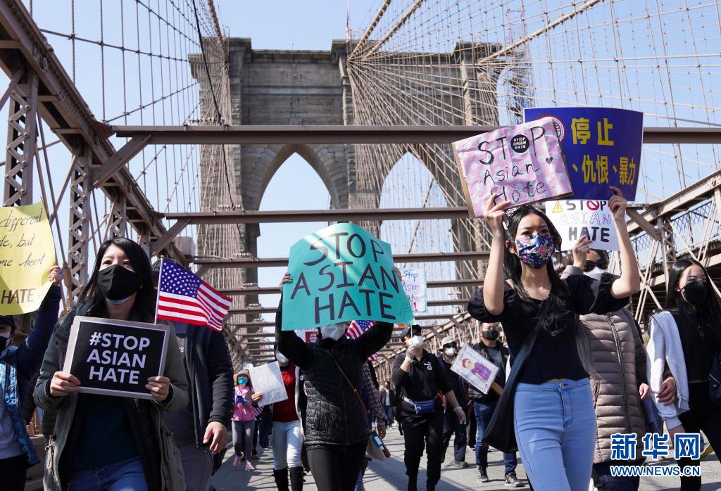 在美國,種族主義是全面、持續和系統性的。曾經的黑奴販賣史是抹不去的歷史污點,而當今美國社會在就業、教育、衛生等各領域針對有色人種顯性或隱形的歧視依然如故。美國警察針對少數族裔的暴力執法觸目驚心,新冠疫情中以亞裔群體為目標的仇恨犯罪激增更讓人心痛。 2021年4月4日,反對亞裔仇恨的游行隊伍走過美國紐約的布魯克林大橋。2020年以來,由于少數美國政客借疫情污名化亞裔,致使針對亞裔的種族歧視和仇恨犯罪不斷升級。 新華社記者 王迎 攝 |
