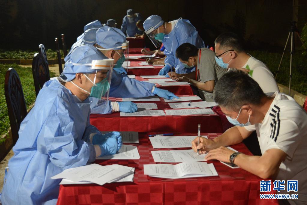 4月17日,在蘇丹喀土穆中油國際尼羅河公司的新冠疫苗接種點,中國第36批援蘇丹醫療隊醫生為在蘇中國公民接種中國國產新冠疫苗進行登記。