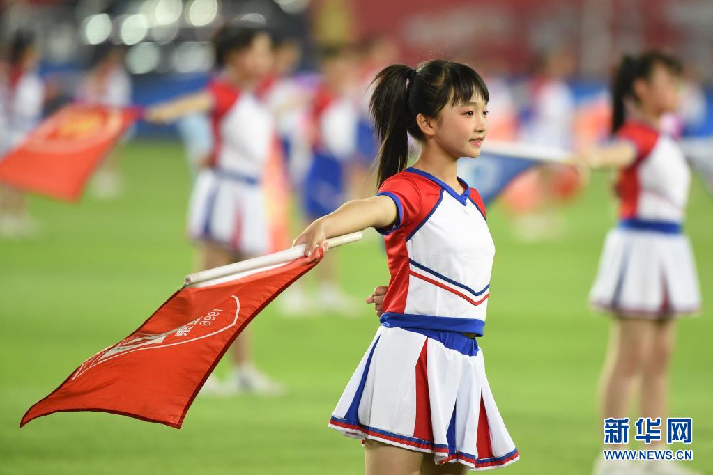 4月20日,演員在開幕式上表演。 當(dāng)日,2021賽季中國(guó)足球協(xié)會(huì)超級(jí)聯(lián)賽開幕式在廣州天河體育中心體育場(chǎng)舉行。 新華社記者 盧漢欣 攝