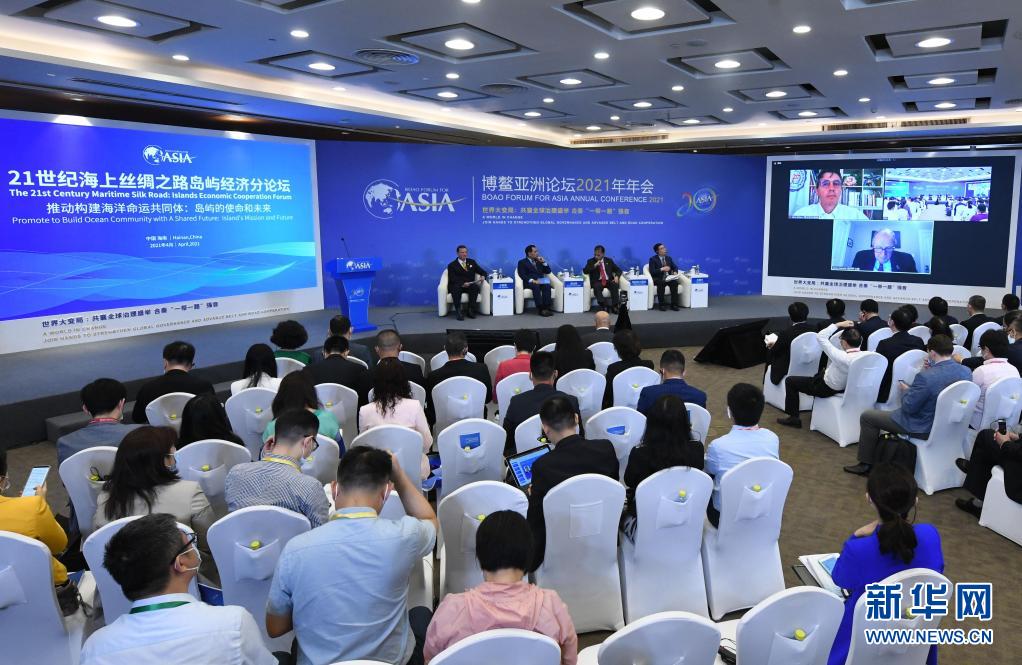 4月19日,博鰲亞洲論壇舉行“21世紀(jì)海上絲綢之路島嶼經(jīng)濟(jì)”分論壇。 博鰲亞洲論壇2021年年會(huì)4月18日至21日在海南博鰲舉行。與會(huì)成員圍繞“世界大變局:共襄全球治理盛舉 合奏‘一帶一路’強(qiáng)音”這一主題,展開了數(shù)十場論壇討論活動(dòng)。 新華社記者 楊冠宇 攝