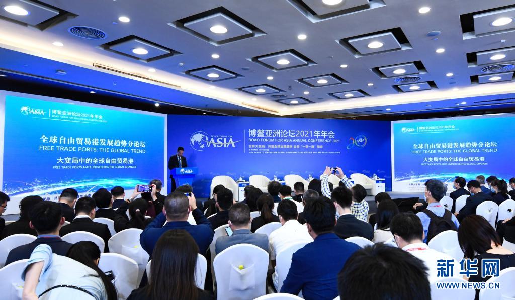 4月20日,嘉賓在“全球自由貿(mào)易港發(fā)展趨勢”分論壇上發(fā)言。 博鰲亞洲論壇2021年年會(huì)4月18日至21日在海南博鰲舉行。與會(huì)成員圍繞“世界大變局:共襄全球治理盛舉 合奏‘一帶一路’強(qiáng)音”這一主題,展開了數(shù)十場論壇討論活動(dòng)。 新華社記者 楊冠宇 攝