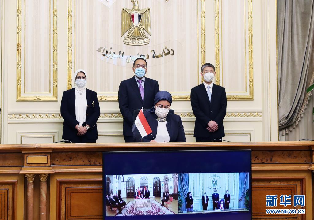 中國科興公司與埃及VACSERA公司的代表21日分別在北京和開羅舉行關于中國新冠疫苗在埃及本地化生產合作協議簽署儀式。埃及總理馬德布利和中國駐埃及大使廖力強在埃及總理府分會場線上見證簽署儀式并舉行會見,埃及衛生部長扎耶德等出席。
