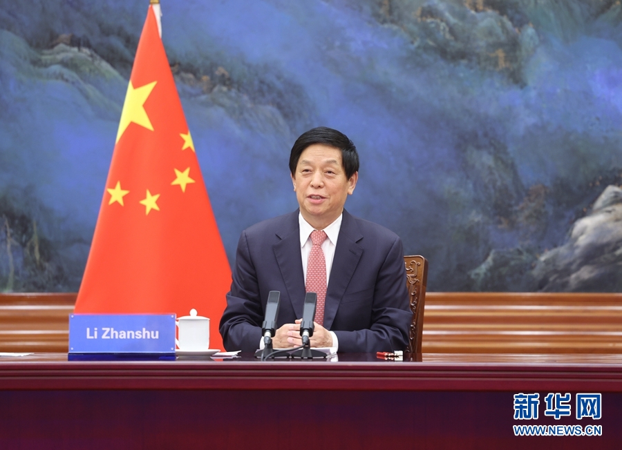 4月27日,全國人大常委會委員長栗戰書在北京人民大會堂以視頻方式同委內瑞拉全國代表大會主席羅德里格斯舉行會談。新華社記者 王曄 攝
