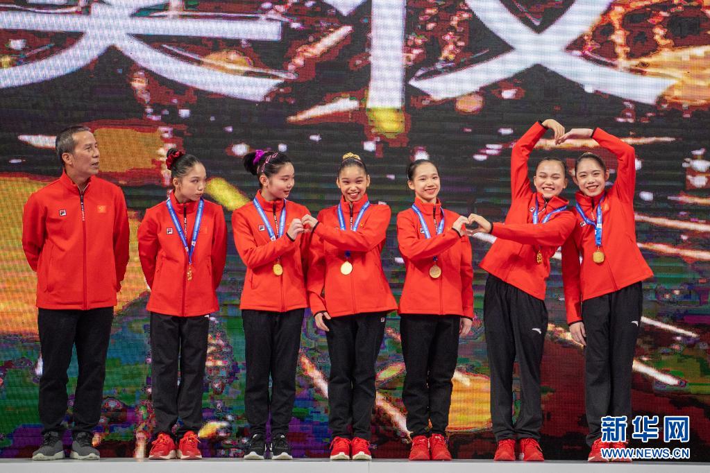 5月5日,廣東隊(duì)在頒獎(jiǎng)儀式上慶祝。 當(dāng)日,2021年全國(guó)體操錦標(biāo)賽暨東京奧運(yùn)會(huì)選拔賽、第十四屆全運(yùn)會(huì)體操資格賽女子團(tuán)體賽在四川成都舉行。廣東隊(duì)、北京隊(duì)、浙江隊(duì)分別以222.428、216.061、214.695分的成績(jī)獲得女子團(tuán)體一、二、三名。 新華社記者 胥冰潔 攝 |