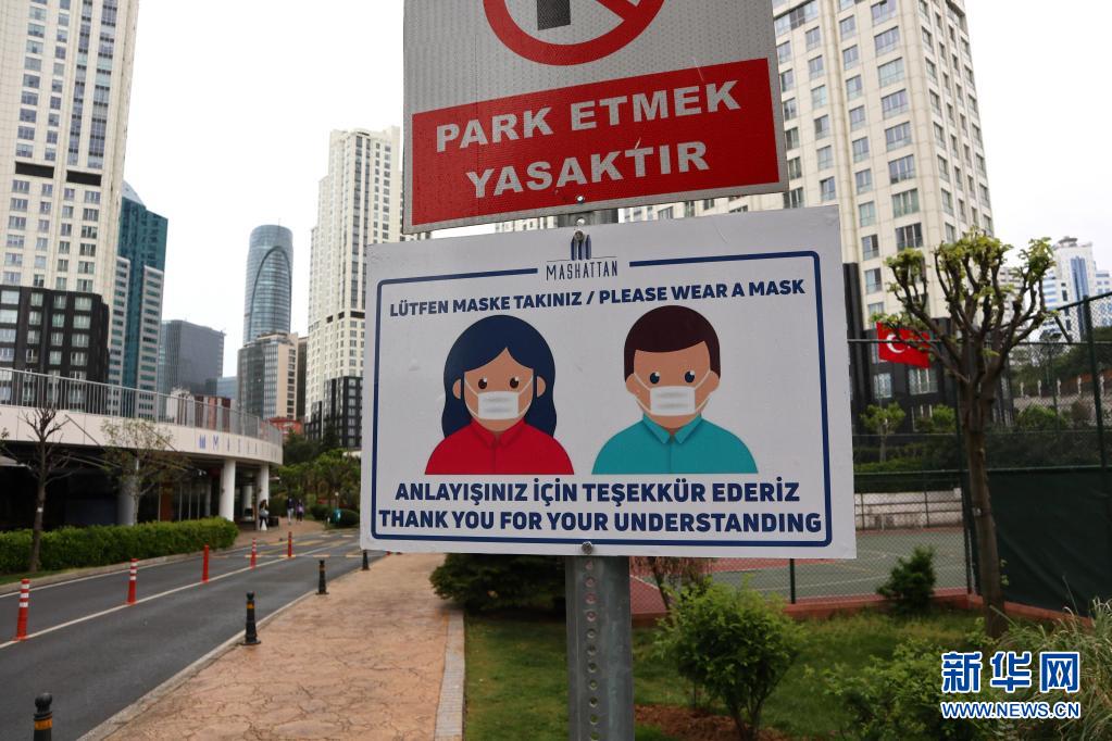 這是5月8日在土耳其伊斯坦布爾街頭拍攝的提醒市民佩戴口罩的告示牌。 根據土耳其衛生部8日公布的數據,該國當天新增新冠確診病例18052例,累計確診5016141例;新增死亡病例281例,累計死亡42746例;累計治愈4691224例。土耳其4月29日開始在全國范圍內實施“全面封鎖”政策,該政策將持續到5月17日。 新華社記者 徐速繪 攝