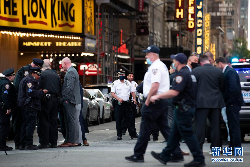 5月8日,警察在美國紐約時報廣場警戒。 美國紐約時報廣場8日發生槍擊事件,造成3人受傷,其中包括1名兒童。紐約警方表示,槍擊事件發生在當地時間17時左右,傷者已被送至附近醫院接受治療。事發后,警方封鎖時報廣場,相關調查正在進行中。 新華社記者 王迎 攝