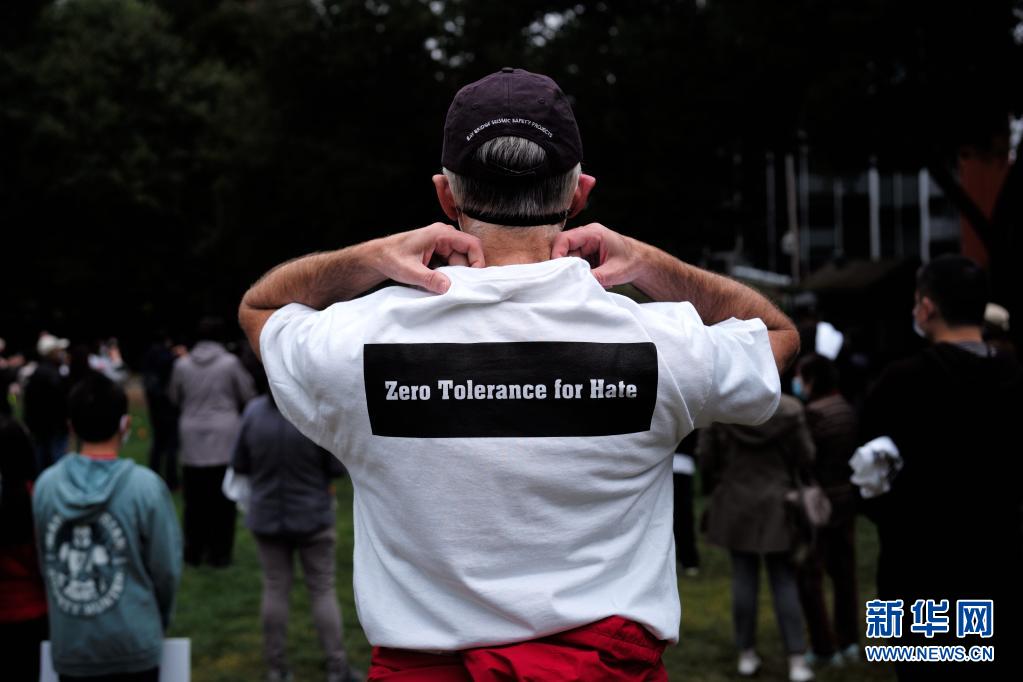5月15日,在美國加利福尼亞州圣馬特奧市,民眾參加反對種族歧視和仇恨犯罪集會活動。