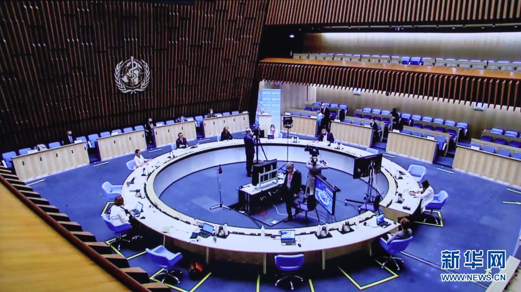 第74屆世界衛生大會24日開幕。這是位于瑞士日內瓦的世界衛生組織總部會議現場(翻拍視頻畫面)。新華社記者 鄭煥松 攝