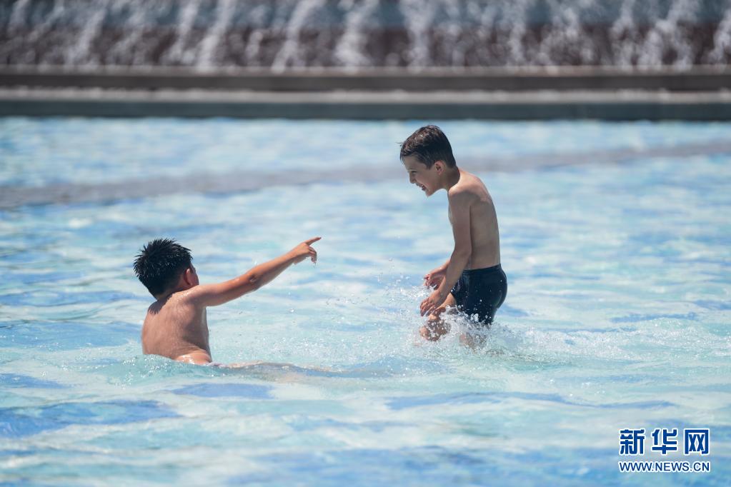 5月29日,孩子們在烏茲別克斯坦首都塔什干一處噴泉內(nèi)戲水。 5月29日,位于中亞的烏茲別克斯坦首都塔什干遭遇高溫天氣,白天最高氣溫達39攝氏度。當(dāng)?shù)貧庀蟛块T預(yù)報,炎熱天氣仍將持續(xù)一段時間。 新華社記者 蔡國棟 攝