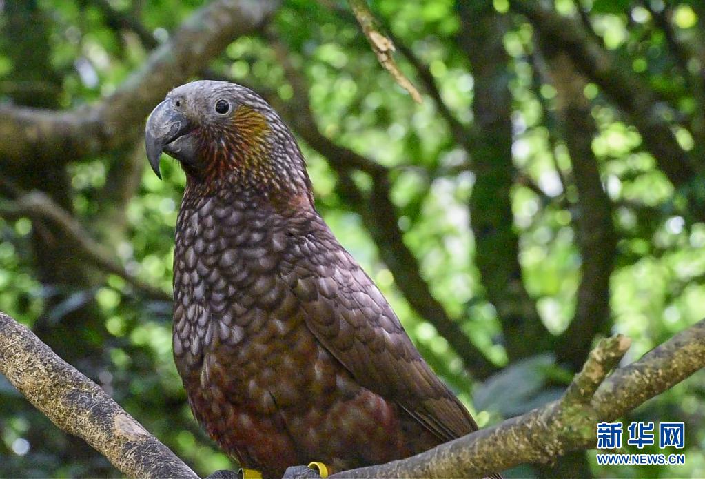 這是在新西蘭首都惠靈頓齊蘭迪亞自然保護(hù)區(qū)拍攝的卡卡鸚鵡(2021年5月16日攝)。新華社記者 郭磊 攝
