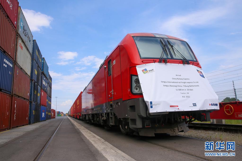 6月4日,首趟從中國江蘇南京至荷蘭蒂爾堡的中歐班列抵達荷蘭蒂爾堡。新華社記者 鄭煥松 攝