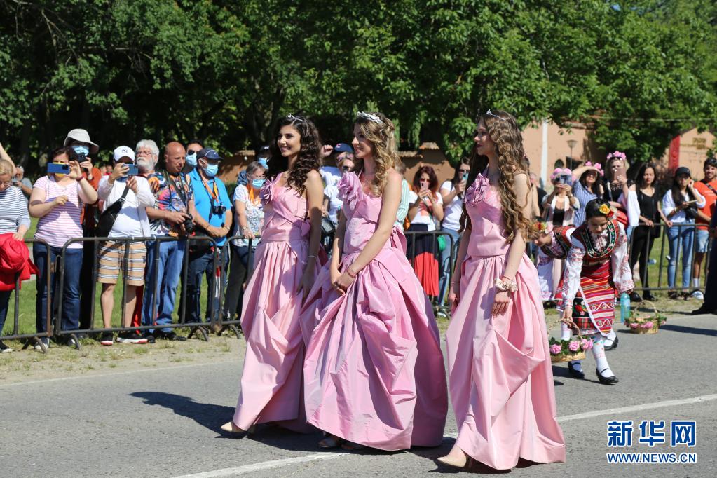 6月6日,在保加利亞卡贊勒克,人們在玫瑰節采摘儀式上表演。 保加利亞久負盛名的玫瑰節本周末在“玫瑰之都”卡贊勒克進入高潮。卡贊勒克距保加利亞首都索非亞約200公里,地處巴爾干山脈南麓一狹長谷地的中心,谷地因種植玫瑰而聞名于世。 新華社記者林浩攝