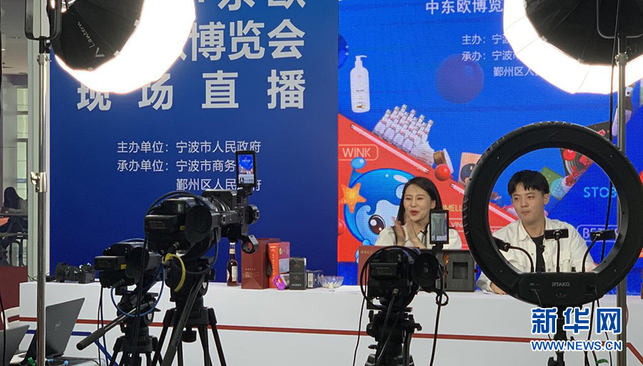 6月9日,主播為博覽會商品直播帶貨。 6月8日至11日,第二屆中國-中東歐國家博覽會在浙江省寧波市舉行。本屆博覽會以“構建新格局、共享新機遇”為主題,設立中東歐展、國際消費品展和進口商品常年展三大展區,并開展論壇、經貿合作等活動,吸引眾多參觀者。新華網記者 王海麟 攝 |