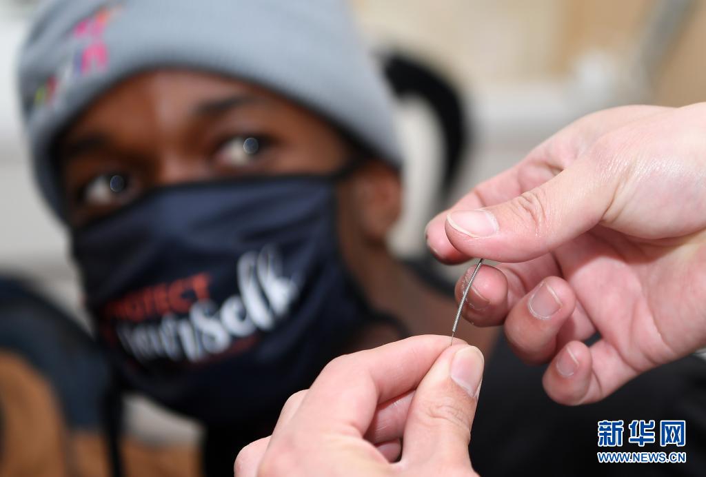 6月9日,在南非約翰內(nèi)斯堡大學(xué)針灸課上,一名學(xué)生在同學(xué)手臂上練習(xí)針法。 南非約翰內(nèi)斯堡大學(xué)2020年2月正式開設(shè)針灸課,十分受學(xué)生們歡迎。隨著南非新冠疫情逐步好轉(zhuǎn),針灸課程恢復(fù)線下面對面教學(xué),每周會有一到兩次線下課程,讓老師能更好地為同學(xué)們答疑解惑。 新華社記者 陳誠 攝