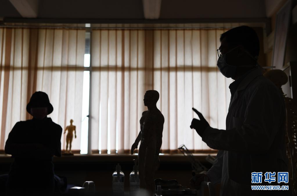 6月9日,針灸課老師胡紫景在南非約翰內(nèi)斯堡大學(xué)給同學(xué)們講解針灸相關(guān)知識。 南非約翰內(nèi)斯堡大學(xué)2020年2月正式開設(shè)針灸課,十分受學(xué)生們歡迎。隨著南非新冠疫情逐步好轉(zhuǎn),針灸課程恢復(fù)線下面對面教學(xué),每周會有一到兩次線下課程,讓老師能更好地為同學(xué)們答疑解惑。 新華社記者 陳誠 攝