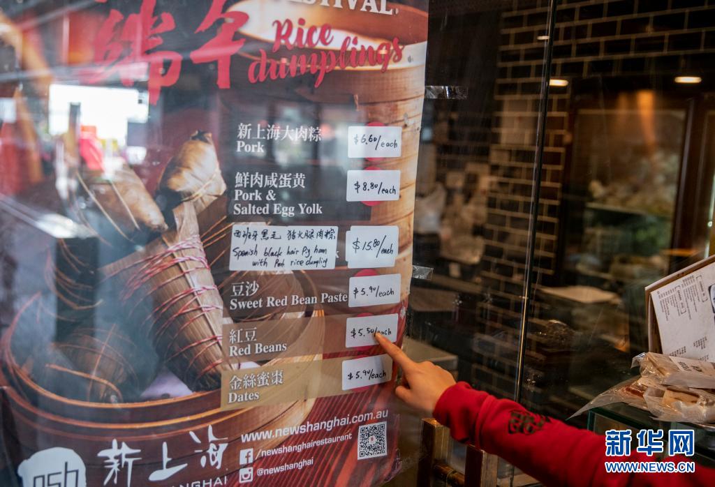 這是6月12日在澳大利亞悉尼一家中餐廳外張貼的粽子廣告。 端午節(jié)臨近,澳大利亞悉尼部分中餐廳推出多種粽子產(chǎn)品,讓當(dāng)?shù)厝A僑華人在佳節(jié)到來之際品嘗到家鄉(xiāng)的味道。 新華社記者 白雪飛 攝