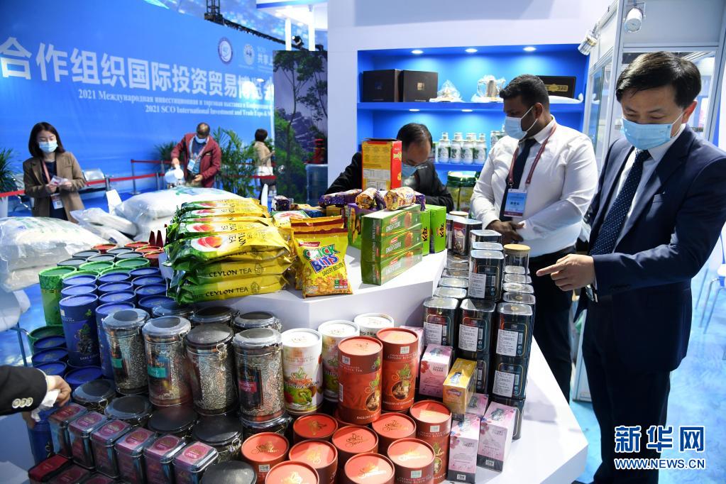 4月26日,2021上海合作組織國際投資貿易博覽會暨上海合作組織地方經貿合作青島論壇在青島開幕,這是與會嘉賓在博覽會上參觀。新華社記者 李紫恒 攝