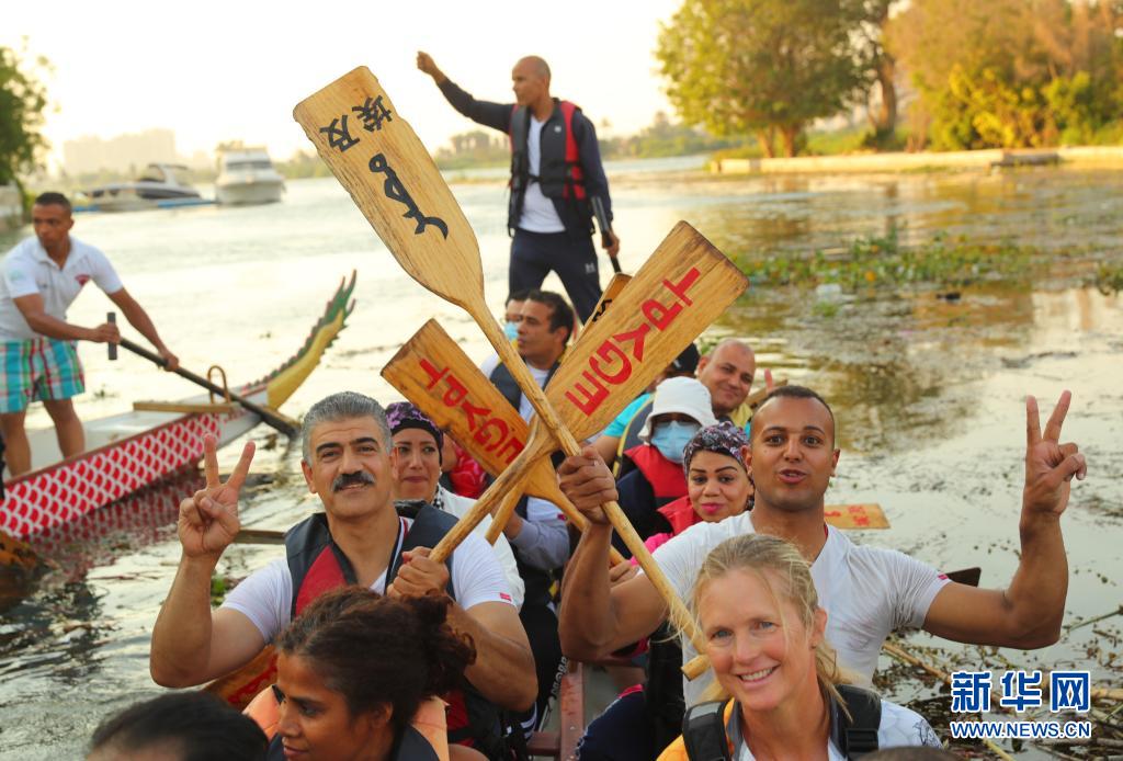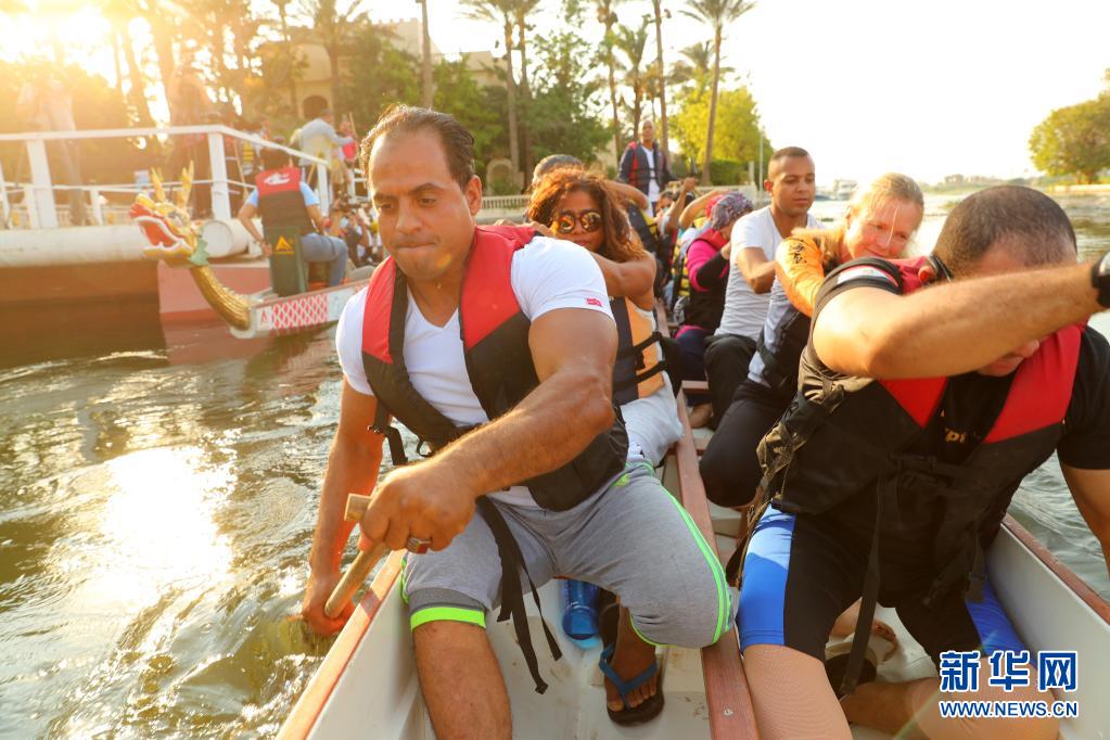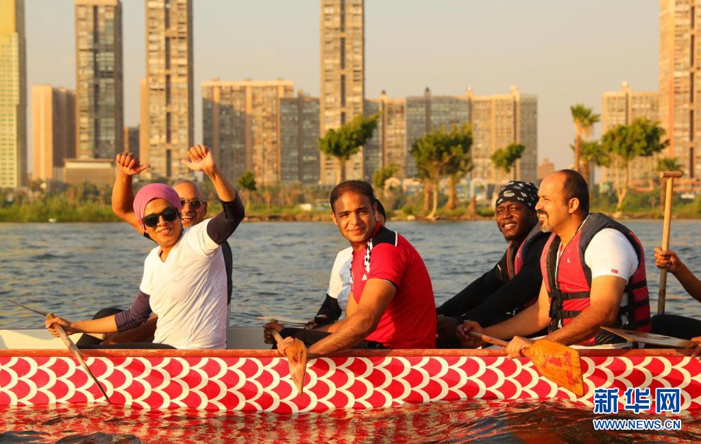 6月14日,在埃及首都開羅,埃及龍舟文化體驗基地的龍舟隊劃船出發(fā)準備比賽。新華社記者 隋先凱 攝