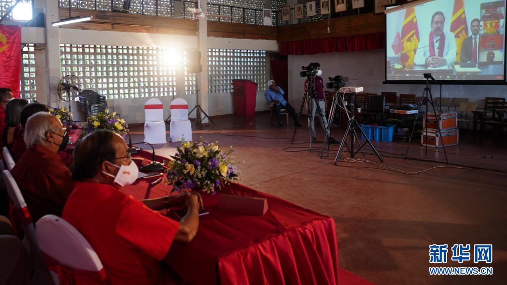 這是6月15日在斯里蘭卡科倫坡拍攝的斯里蘭卡朝野主要政黨共同舉辦的慶祝中國共產(chǎn)黨成立100周年大會主會場。 斯里蘭卡共產(chǎn)黨、人民陣線黨、自由黨、統(tǒng)一國民黨等12個朝野主要政黨15日以視頻方式共同舉辦慶祝中國共產(chǎn)黨成立100周年大會,并現(xiàn)場宣讀斯朝野政黨共同簽署的慶祝中國共產(chǎn)黨建黨百年賀函。 新華社記者 唐璐 攝