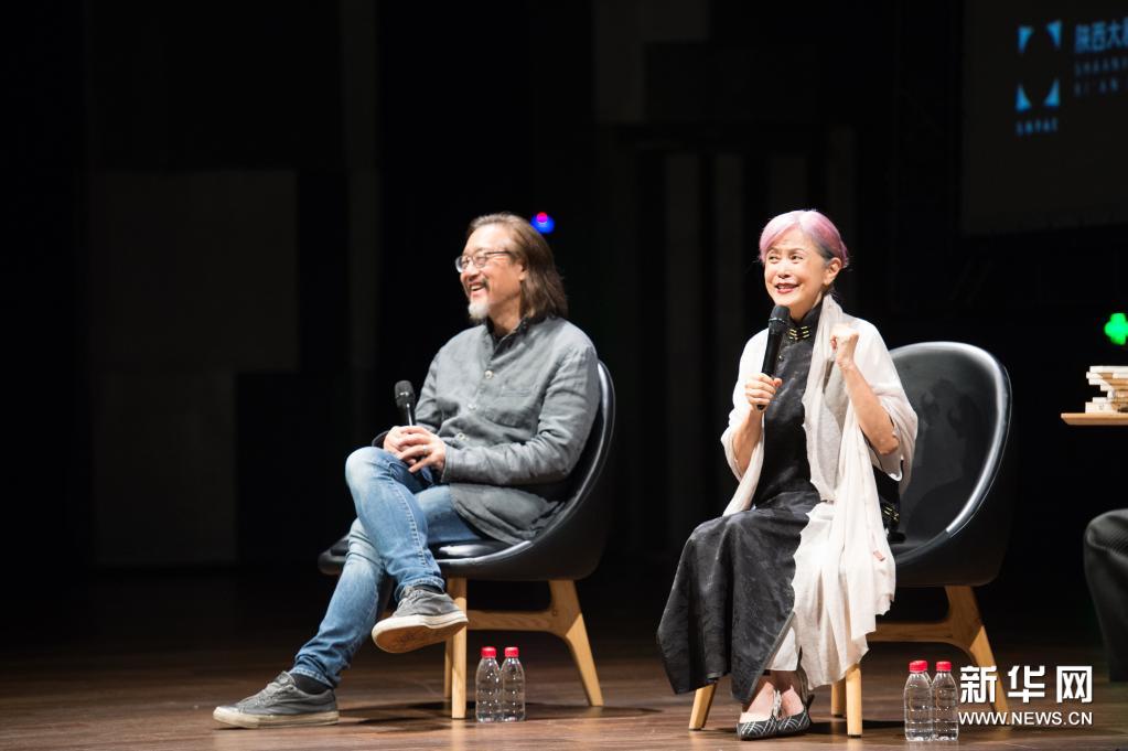 6月17日,賴聲川、丁乃竺(右)在陜西大劇院與上劇場戰略合作發布會上與觀眾交流。新華社記者 魏翔 攝