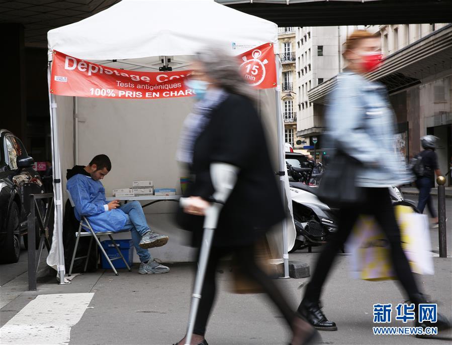 這是6月30日在法國巴黎老佛爺百貨商場外拍攝的快速新冠病毒檢測點。 為期四周的法國2021年度夏季打折季于30日拉開帷幕,將持續至7月27日。 新華社記者高靜攝