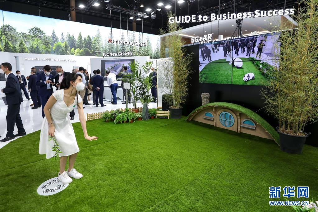 6月28日,在西班牙巴塞羅那,工作人員(左二)在世界移動通信大會華為展廳介紹5G技術(shù)的應(yīng)用場景。 2021世界移動通信大會于6月28日至7月1日在西班牙巴塞羅那舉行。5G技術(shù)仍是當(dāng)下熱門的話題,5G網(wǎng)絡(luò)的普及為人們進(jìn)一步拓寬了想象的邊界,其所衍生的應(yīng)用已開始延伸到生活的各個(gè)層面。 新華社記者 張鋮 攝