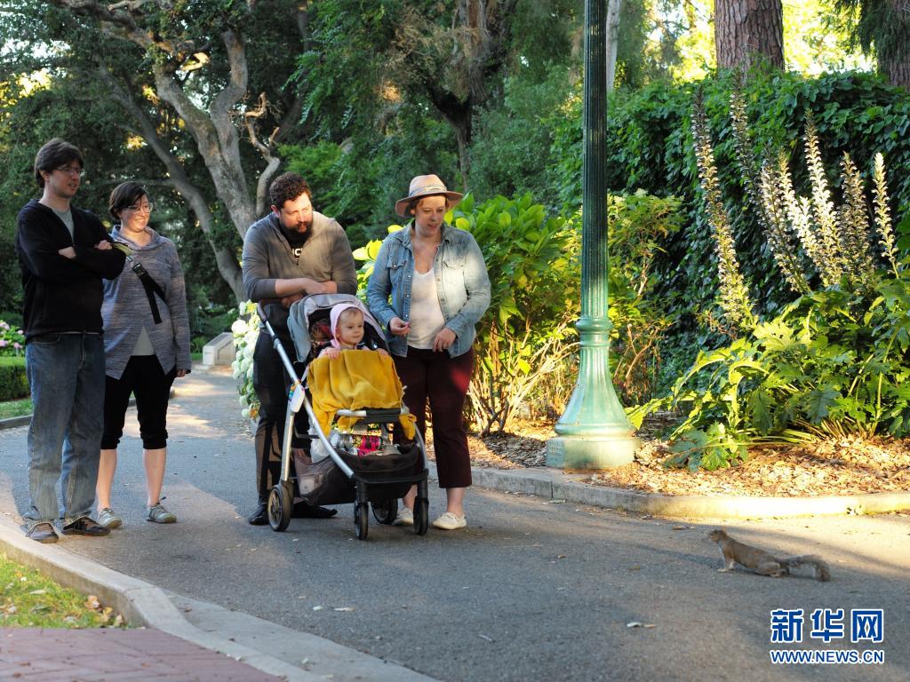 7月1日,在美國舊金山灣區(qū)城市圣馬特奧,在公園休閑的人們注視著一只路上的松鼠。