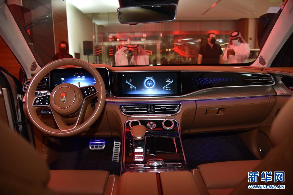 這是6月30日在沙特利雅得的中國一汽紅旗旗艦店內(nèi)拍攝的H9車型內(nèi)飾。新華社記者 王海洲 攝