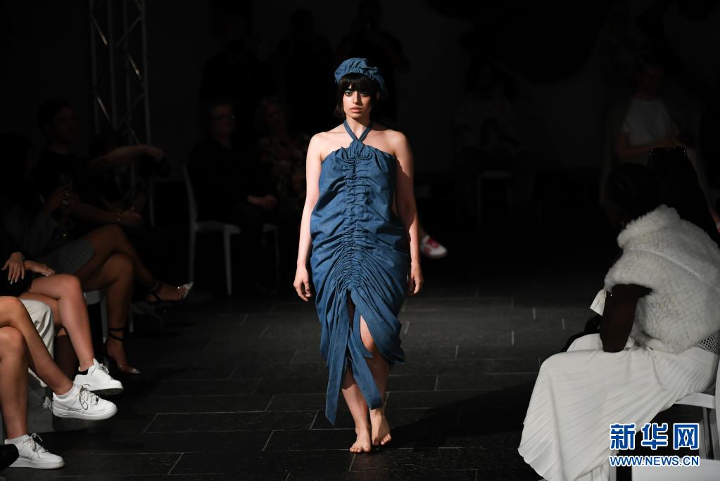 7月5日,在德國法蘭克福森肯貝格自然歷史博物館,一名模特展示設計師薩穆埃爾·格特納的時裝作品。