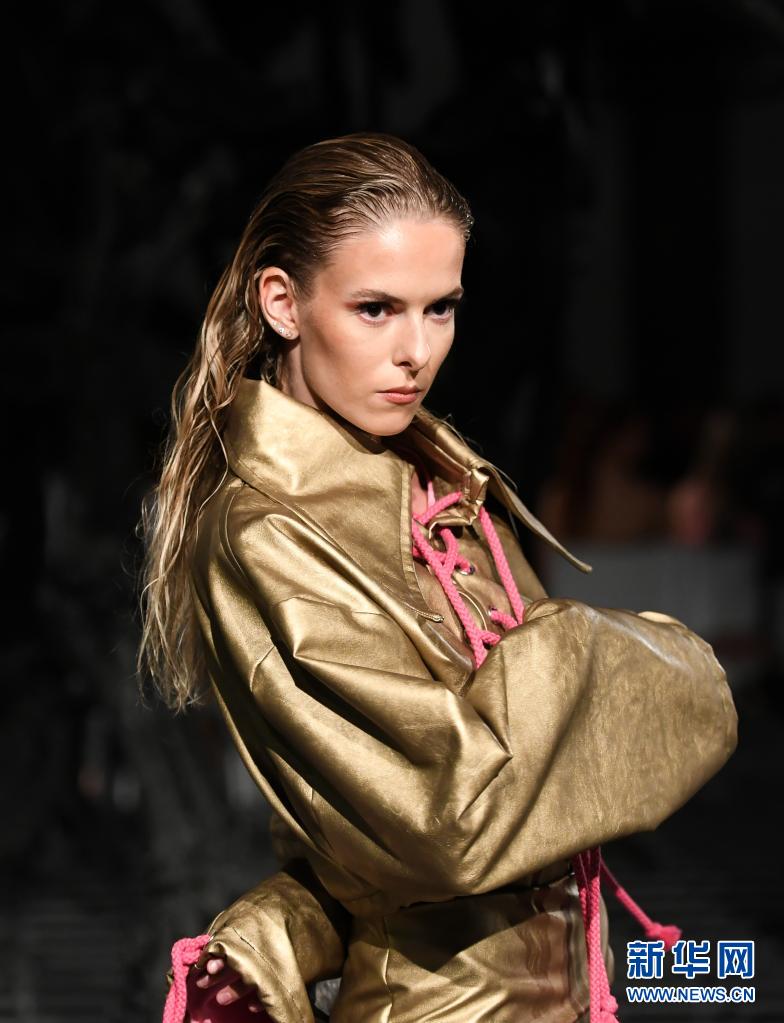 7月5日,在德國法蘭克福森肯貝格自然歷史博物館,一名模特展示設(shè)計(jì)師薩穆埃爾·格特納的時(shí)裝作品。