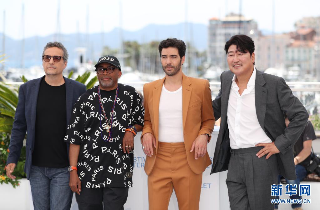 7月6日,第74屆法國戛納國際電影節(jié)主競賽單元評委出席拍照式。從左至右:小克萊伯·門多薩、斯派克·李、塔赫爾·拉希姆、宋康昊。