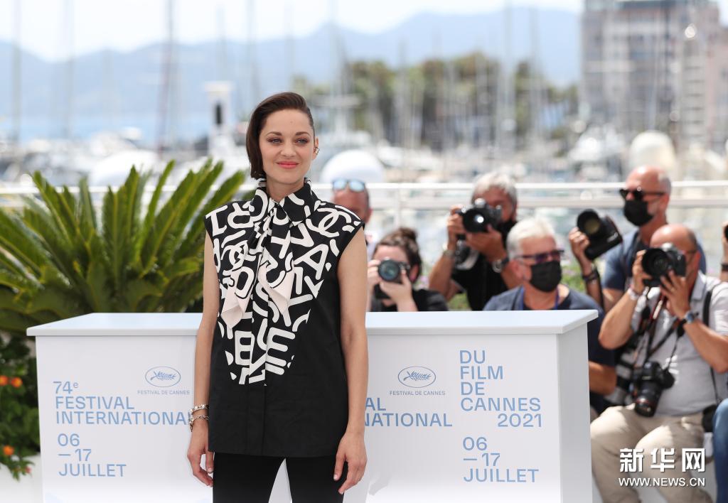 7月6日,法國影片《安妮特》主創人員、法國演員瑪麗昂·科蒂亞爾在法國戛納出席電影節拍照式。新華社記者 高靜 攝