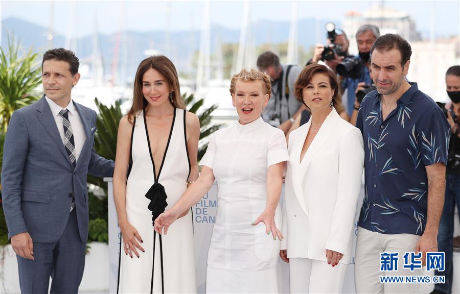 7月8日,戛納國(guó)際電影節(jié)“一種關(guān)注”單元評(píng)委會(huì)主席安德烈婭·阿諾德(中)攜評(píng)委會(huì)成員在法國(guó)戛納出席拍照式。 新華社記者 高靜 攝