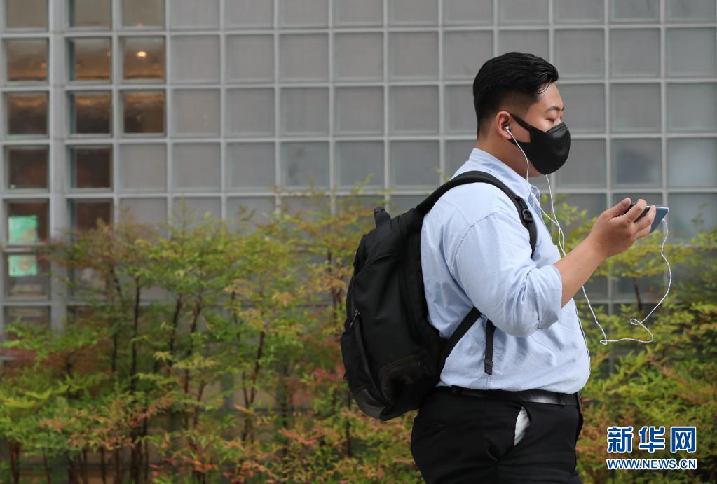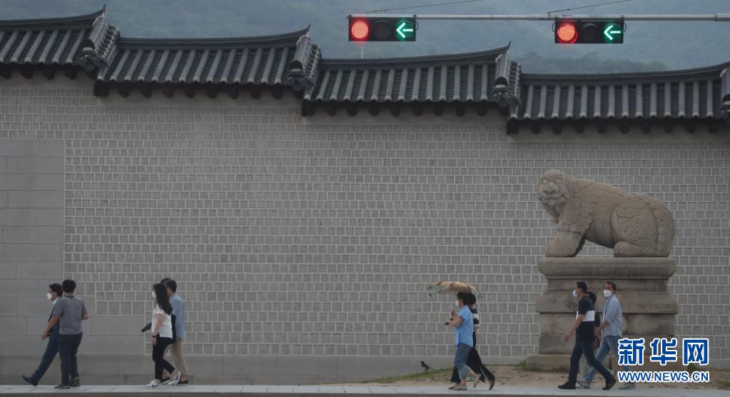 7月9日,行人戴口罩走在韓國首爾光化門附近。 韓國國務(wù)總理金富謙9日主持召開中央災(zāi)難安全對策本部會議時宣布,鑒于連日來韓國新冠疫情迅速惡化,政府決定從12日起將首都圈防疫響應(yīng)上調(diào)至最高級別——第四級,為期兩周。 新華社記者 王婧嬙 攝