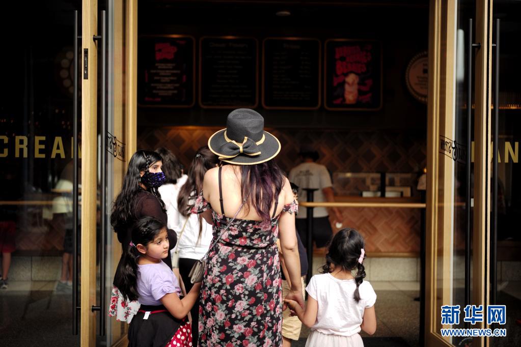 7月10日,在美國舊金山灣區城市圣拉蒙一個購物中心,人們排隊購買冰激凌。