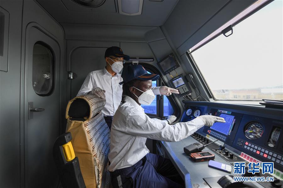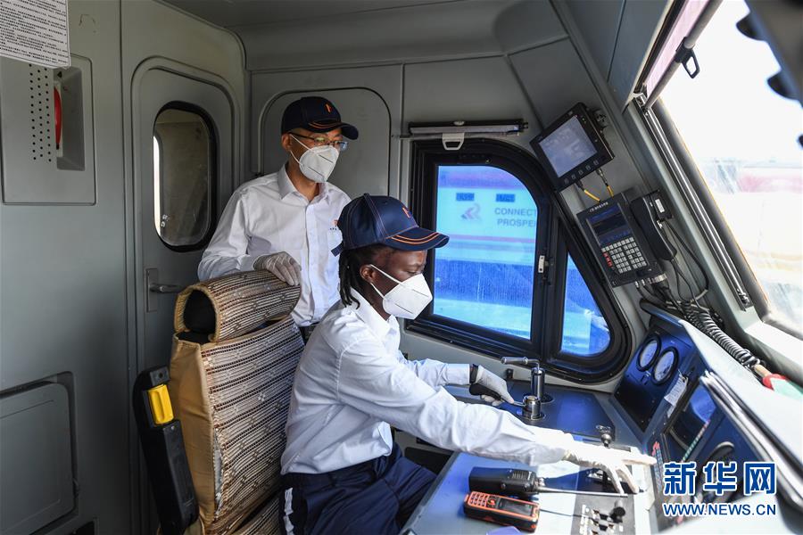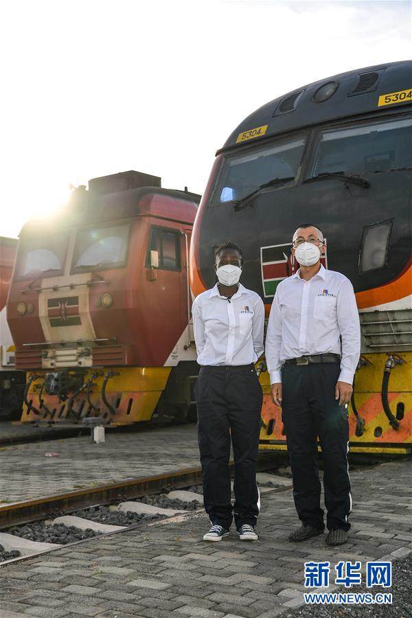 3月22日,在肯尼亞首都內羅畢,蒙內鐵路指導司機楊明和他的肯尼亞女徒弟康西莉亞進行火車機車對接車廂工作。 新華社記者 李琰 攝 |