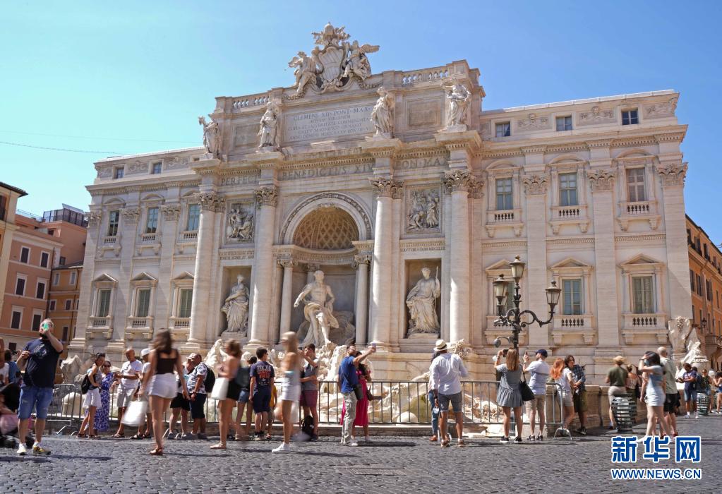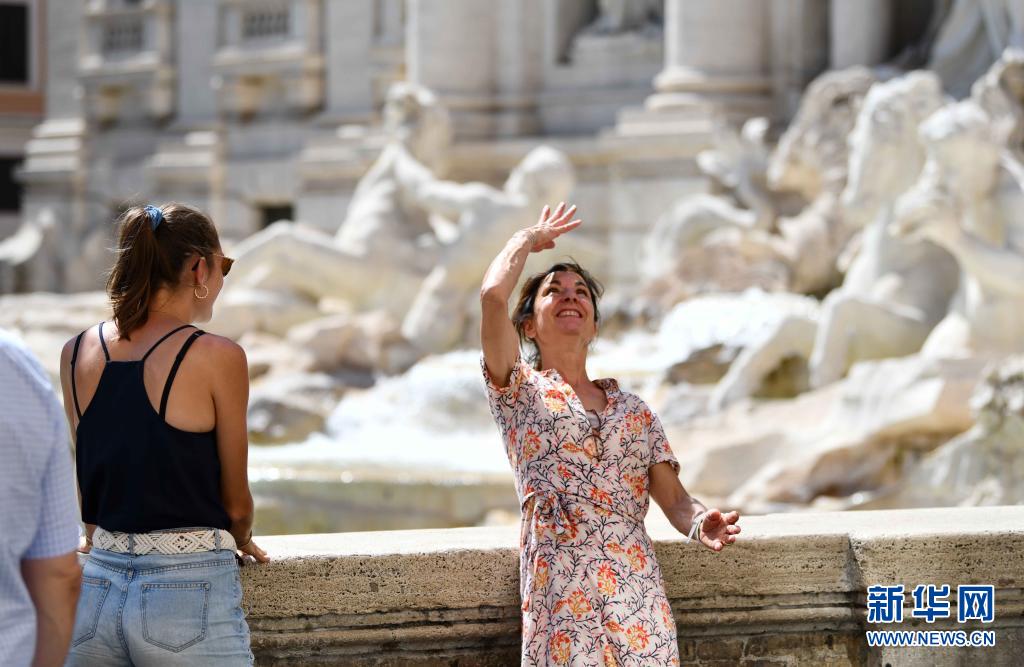 7月11日,人們?cè)谝獯罄_馬的許愿池前參觀拍照。 當(dāng)日,羅馬最高氣溫達(dá)到32攝氏度。 新華社記者 金馬夢(mèng)妮 攝