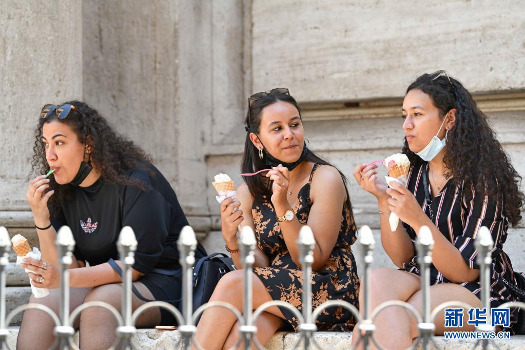 7月11日,人們?cè)谝獯罄_馬吃冰淇淋消暑。 當(dāng)日,羅馬最高氣溫達(dá)到32攝氏度。 新華社記者 金馬夢(mèng)妮 攝 |