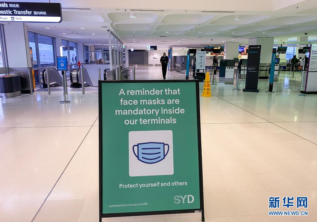 這是7月14日在澳大利亞悉尼機場拍攝的佩戴口罩提示。